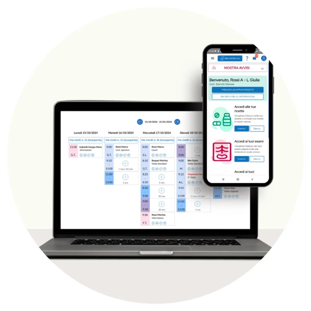 Piattaforma digitale completa che connette medico, pazienti e segreteria in un ecosistema integrato.